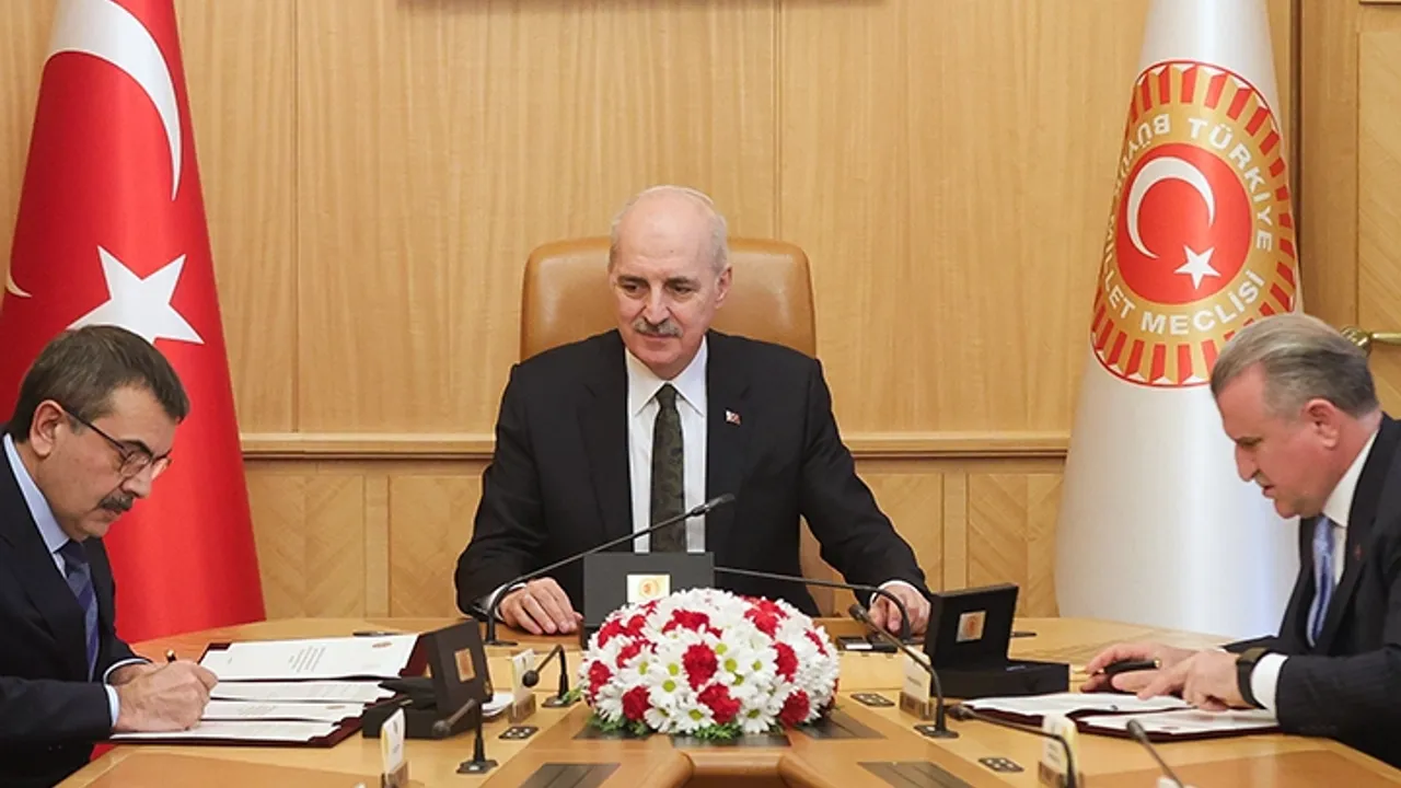 TBMM Başkanı Numan Kurtulmuş ile Gençlik ve Spor Bakanı Osman Aşkın Bak ve Milli Eğitim Bakanı Yusuf Tekin, "23 Nisan Ulusal Egemenlik ve Çocuk Bayramı Kutlamalarına Yönelik İş Birliği Protokolü" imzaladı.ANKARA (İGFA) - TBMM Başkanı Kurtulmuş, Başkanlık Divan Salonu’nda “23 Nisan Ulusal Egemenlik ve Çocuk Bayramı Kutlamalarına Yönelik İş Birliği Protokolü İmza Töreni” düzenlendi.