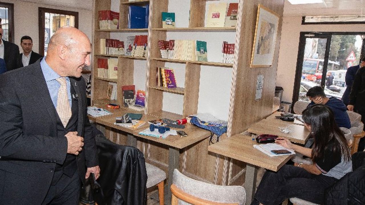 İzmir Büyükşehir Belediye Başkanı Tunç Soyer, İzmir Büyükşehir Belediyesi tarafından Buca’da açılan 100. Yıl Kitap Kafe ve Kütüphane’yi ziyaret etti. Başkan Soyer, günde bin öğrenciyi ağırlayan 7 gün 24 saat açık olan kafe ve kütüphanede gençlerle sohbet etti.İZMİR (İGFA) - İzmir Büyükşehir Belediye Başkanı Tunç Soyer Buca’da Aralık ayından itibaren hizmet veren kitap kafe ve kütüphaneyi ziyaret ederek gençlerle sohbet etti. Kentte 7 gün 24 saat açık olan tek kütüphane olma özelliği taşıyan ve öğrencilerin yoğun ilgi gösterdiği kütüphanede Başkan Tunç Soyer gençler tarafından ilgiyle karşılandı. Gençlerin sorularını da yanıtlayan Başkan Soyer, “Ben hiçbir şeyden vazgeçecek değilim. Sonuçta bu memleket için ne iş yapıyor olursak olalım elimizden ne geliyorsa daha fazlasını yapacağız. Bunlar nöbet işleri o yüzden ben bu dönem elimden gelenin en iyisini yapmaya çalıştım. İçim rahat. Elimden Bundan sonra nerede olursam olayım, ne yaparsam yapayım en güzelini, en iyisini yapacağım. Ben bu ülkenin geleneklerini, geçmişini, kültürünü, değerlerini çok seviyorum ve bunları korumak için canla başla çalışmaya devam edeceğim” dedi.