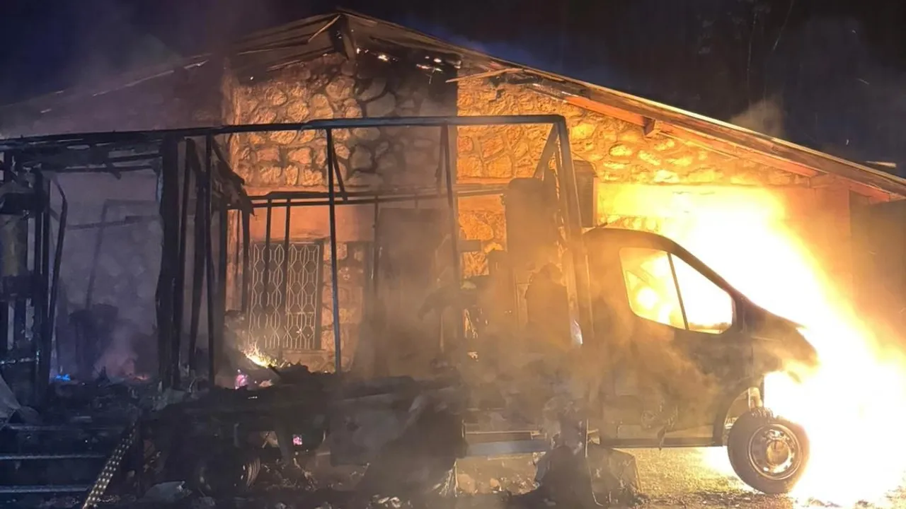 İtfaiye ekiplerinin müdahalesiyle yangın kontrol altına alınırken, olayda araç kullanılamaz hale gelirken, lojmanda maddi hasar oluştu.