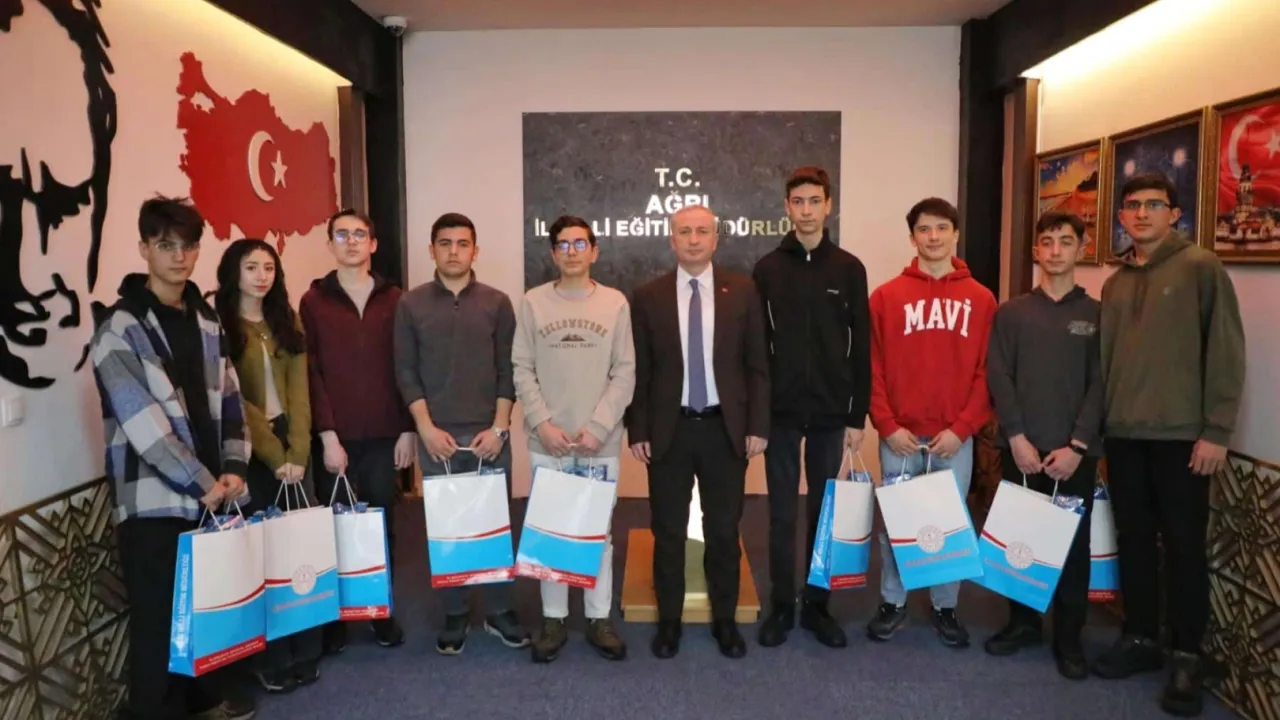 Batman'da düzenlenen TÜBİTAK 2204-A Liseler Arası Araştırma Projeleri Yarışması Van Bölge Finali'nde Ağrılı öğrenci ve öğretmenler ödüllendirildi. İl Milli Eğitim Müdürü Hasan Kökrek, projelerin başarısını kutlayarak öğrenci ve öğretmenlere hediyeler verdi.