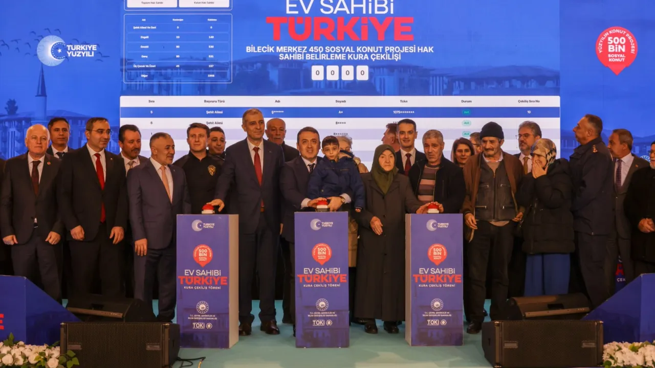 Bilecik Valisi Faik Oktay Sözer'in katılımıyla, Yüzyılın Konut Projesi kapsamında inşa edilecek 1.419 konutun hak sahipleri noter huzurunda gerçekleştirilen kura çekilişiyle belirlendi.