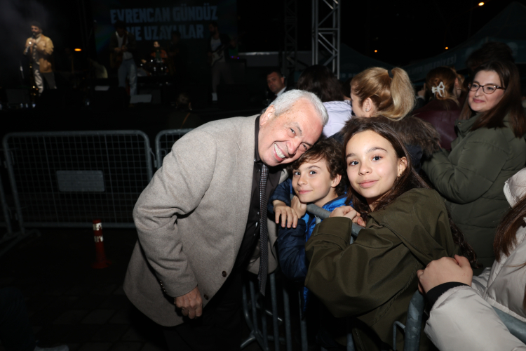 Konserin sonunda sahneye gelerek Evrencan Gündüz'e günün anısına hediye takdim eden Nilüfer Belediye Başkanı Şadi Özdemir, etkinlik boyunca sahne alan sanatçılara ve ilgi gösteren seyircilere teşekkür etti.