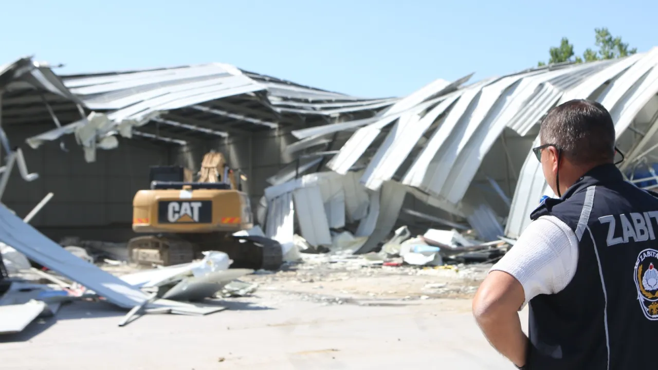 Bursa Nilüfer Belediyesi, Yaylacık Mahallesi’nde tarım arazisi üzerine inşa edilen 1 depoyu yıkarken, 1 depoyu da kullanılamaz hale getirdi.BURSA (İGFA) - Bursa Nilüfer Belediyesi, özellikle tarım alanlarına yapılmış kaçak yapılarla mücadelesine kararlılıkla devam ediyor. Belediye ekipleri tarafından tespit edilerek, yasal prosedürleri tamamlanan ruhsatsız yapılar yıkılıyor. Çevik kuvvet ve zabıta ekiplerinin güvenlik önlemleri çerçevesinde, Yaylacık Mahallesi’nde bin 500 metrekarelik bir depo tamamen yıkılırken, 280 metrekarelik depo da kullanılamaz hale getirildi.