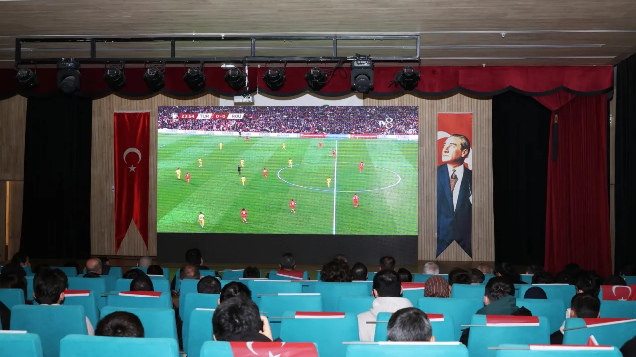 BURSA (İGFA) - A Milli Futbol Takımı'nın, 2026 FIFA Dünya Kupası Avrupa Elemeleri play-off turu yarı finalinde Romanya ile karşı karşıya geldiği kritik mücadeleyi Osmangazi'de yaşayan vatandaşların coşkuyla takip edebilmesi için Osmangazi Belediyesi tarafından, Osmangazi Gösteri Merkezi'nde dev ekran kuruldu. Maç saatinden önce salona gelen vatandaşlar, ellerinde Türk bayrakları ve milli formalarla tribün atmosferini aratmayan görüntüler oluşturdu. Maç boyunca sık sık tezahüratlar yapan futbolseverler, A Milli Takım'a desteklerini alkışlarla gösterdi. Özellikle kritik anlarda yükselen coşku, adeta stadyum atmosferini Osmangazi'ye taşıdı.