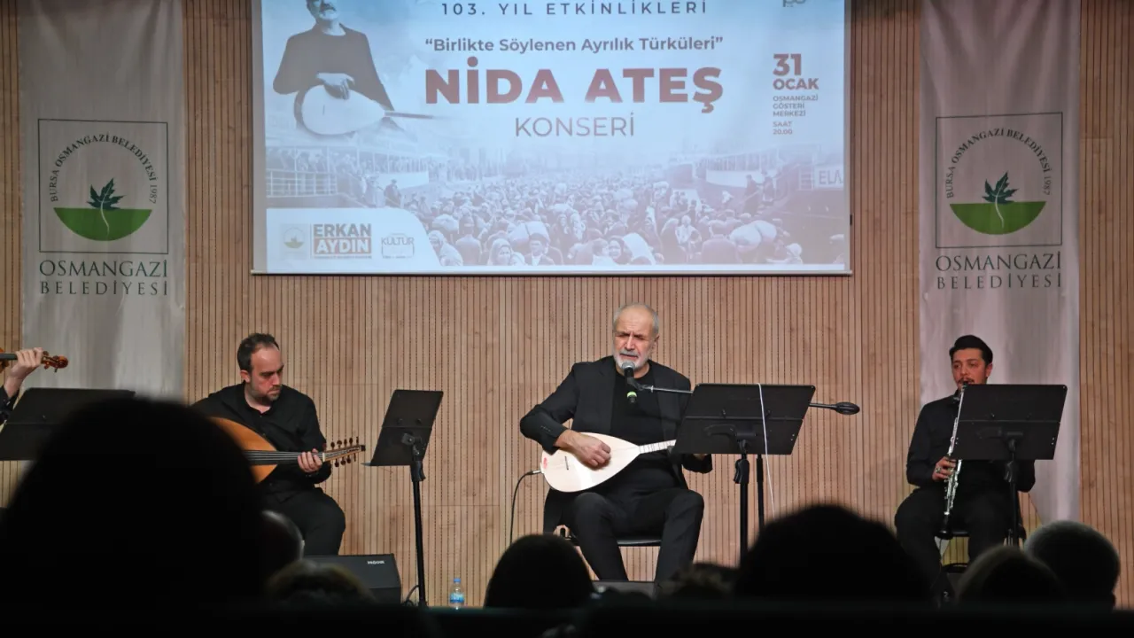 Bursa'da Osmangazi Belediyesi, Lozan Mübadelesi'nin 103'üncü yılı dolayısıyla anlamlı bir konsere ev sahipliği yaptı. 'Birlikte Söylenen Ayrılık Türküleri' başlığıyla sahne alan Nida Ateş, ayrılığın ve hasretin ortak hafızadaki izlerini türküler aracılığıyla dinleyicilere aktardı.