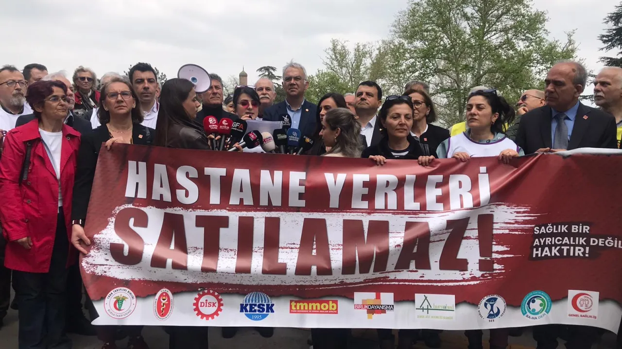 Bursa Tabip Odası öncülüğünde düzenlenen basın açıklamasında, kamuya ait sağlık alanlarının satış iddialarına tepki gösterildi. STK'lar ve CHP milletvekillerinin de katılım sağladığı tepkili açıklamada hekimler, 'Sağlık haktır, satılamaz' mesajı verdi.
