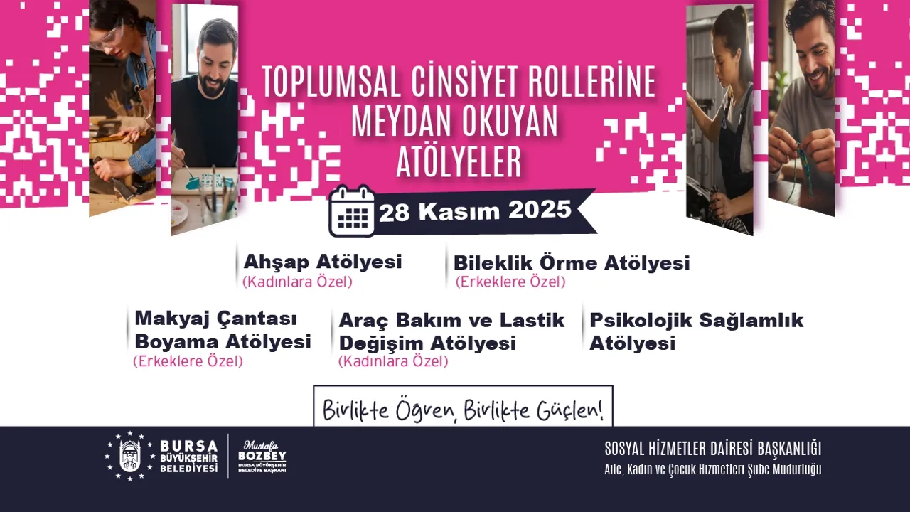 Etkinlik kapsamında kadınlara yönelik 'Araç bakımı ve lastik değişimi' ve 'Ahşap' atölyeleri düzenlenirken, kadın ve erkek katılımlı 'Psikolojik sağlamlık' atölyesi ile toplumsal rollerin duygusal etkilerine odaklanacak. Erkek katılımcılar için hazırlanan 'Makyaj çantası tasarım' ve 'Bileklik örme' atölyeleriyle bakım, estetik ve el emeğinin cinsiyetle sınırlandırılamayacağı vurgulanacak.