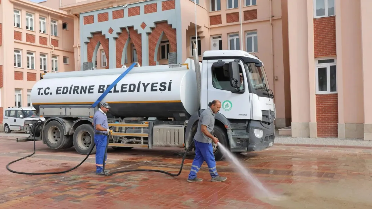 Edirne Belediyesi, yeni eğitim öğretim yılı öncesinde okulların çevresinde temizlik ve düzenleme çalışmalarına başladı. İlk olarak Mehmet Ruşen Erkurt Ortaokulu’nda, Temizlik İşleri Müdürlüğü ve Park ve Bahçeler Müdürlüğü ekipleri iş birliğiyle kapsamlı bir çalışma gerçekleştirildi.Erdoğan DEMİR / EDİRNE (İGFA) - Edirne'deki çalışmalar kapsamında yerel belediye tarafından okul bahçesi ve çevresinde ot biçme, genel temizlik, bakım ve düzenleme yapılarak öğrenciler için daha güvenli ve sağlıklı bir ortam hazırlandı.