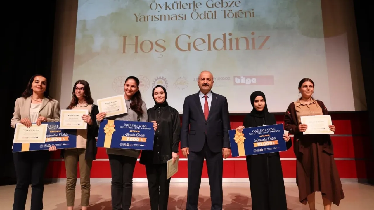 Kocaeli'de Gebze Belediyesi ve İlçe Milli Eğitim Müdürlüğü işbirliğinde düzenlenen Öykülerle Gebze Yarışması’nda dereceye giren öğrencilere ödülleri, törenle ilçe protokolü tarafından takdim edildi.KOCAELİ (İGFA) - Gebze Belediyesi ve İlçe Milli Eğitim Müdürlüğü işbirliğinde düzenlenen Öykülerle Gebze Yarışması’nın ödül töreni kent meydanında bulunan Gebze Kültür Merkezi’nde düzenlendi.