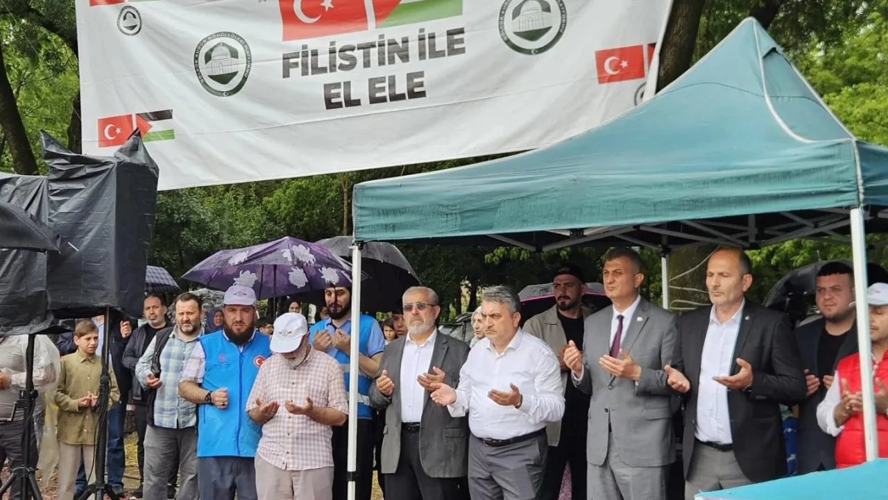 Kocaeli'de Gölcük Belediyesi ve Kudüs Gönüllüleri Platformu iş birliğiyle düzenlenen anlamlı etkinlikte, sağanak yağışa rağmen yüzlerce kişi, Filistin’deki zulme dikkat çekmek için bir araya geldi.KOCAELİ (İGFA) - Gölcük’te sağanak yağmur altında toplanan yüzlerce kişi, Filistin’de yaşanan zulme tepki göstermek için tek yürek oldu.