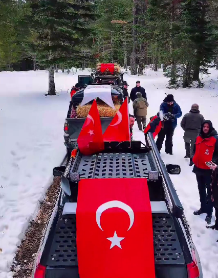 Vakıflar Genel Müdürlüğü, kış aylarında yiyecek bulmakta zorlanan yaban hayvanları için Ilgaz Dağı'nda yüzlerce kilo saman ve arpa bıraktı.