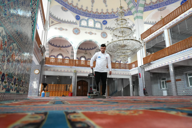 Ekipler temizlik çalışmalarını tüm ibadethanelerde eş zamanlı sürdürmeye devam ediyor.