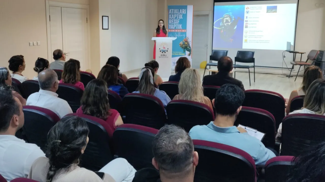 İzmir'de Çiğli Belediyesi’nin ev sahipliğinde düzenlenen “Atıkları Kaptık, Resif Yaptık” seminerde, endüstriyel tasarımcı Nermin Sena Özger, midye kabuklarından yapılan yapay resiflerle deniz ekosistemini koruma projesini anlatırken, sürdürülebilir yaşam ve turizm potansiyeline de vurgu yaptı.İZMİR (İGFA) - Çiğli Belediyesi’nin düzenlediği “Atıkları Kaptık, Resif Yaptık” seminerinde, endüstriyel tasarımcı ve proje yürütücüsü Nermin Sena Özger, atıkların dönüşümünden deniz ekosistemine katkılarına uzanan süreci katılımcılarla paylaştı.