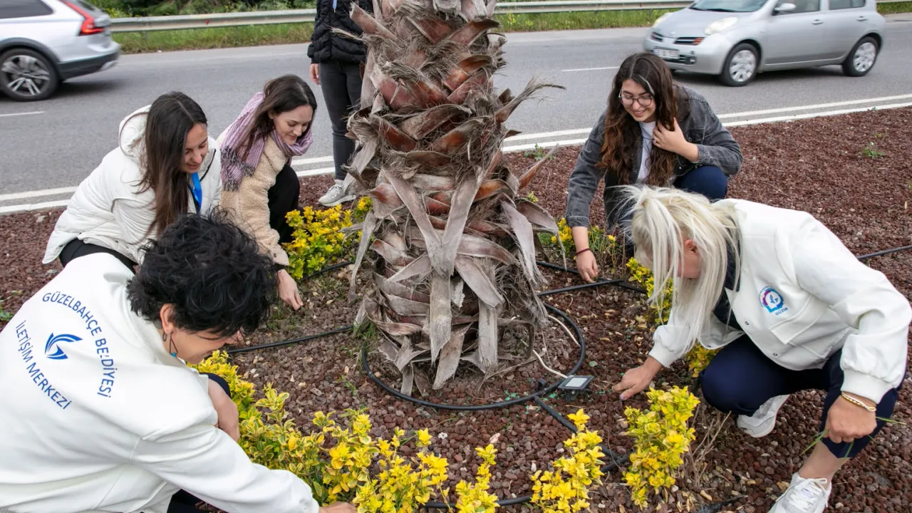 Başta Seferihisar orta refüjü olmak üzere Güzelbahçe’nin birçok kavşak ve meydanına dikilerek Güzelbahçe’nin simgesi haline gelen oya ağaçlarının bakımı yaptı, uzayan otları yoldu.