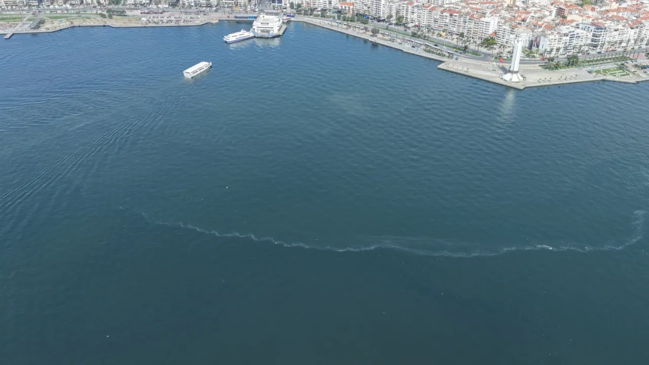 İzmir Büyükşehir Belediyesi tarafından İzmir Körfezi'nde yapılan rutin dron tarama faaliyetleri kapsamında kasım ayından bu yana dokuzuncu kez dış kaynaklı kirlilik tespit edildi. Karşıyaka İskelesi civarında deniz yüzeyinde dış atık maddeler görüntülendi.