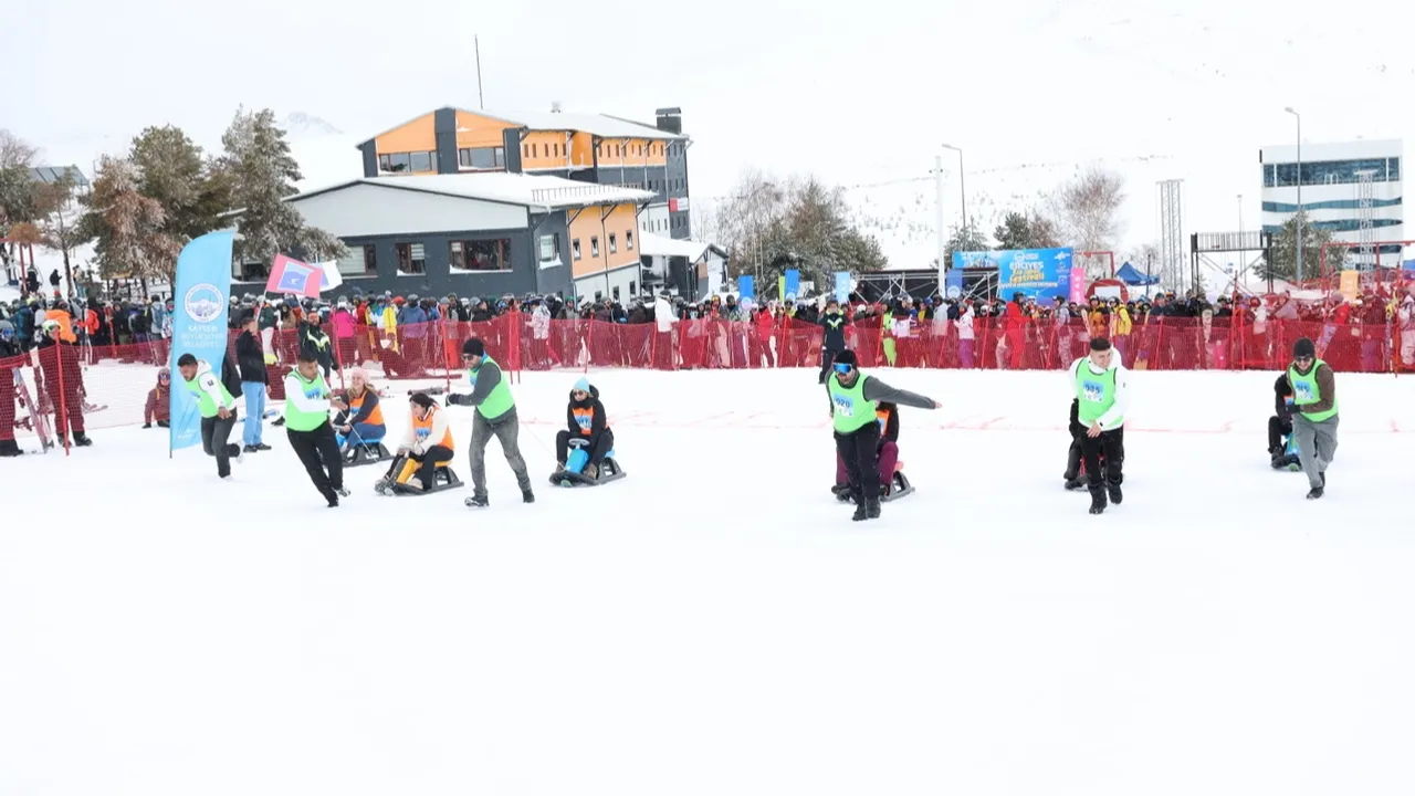 Erciyes Tekir Kapı bölgesinde yapılan yarışmaya farklı şehirlerden 10 çift katıldı. Yarışmada çiftler önce kızakla birbirlerini çekti, ardından hiç ara vermeden birlikte kızakla kayarak bitiş noktasına ulaşmak için mücadele etti. Heyecan, spor ve eğlencenin bir arada yaşandığı organizasyonda çiftler parkuru en kısa sürede tamamlamak için kıyasıya yarıştı.