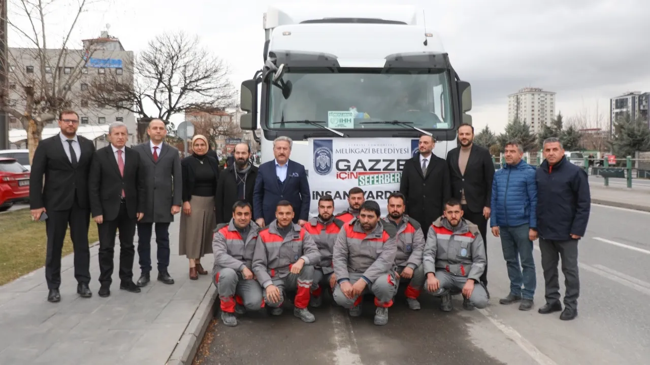 Kayseri Melikgazi Belediyesi, Gazze'de yaşanan yaşam mücadelesine kayıtsız kalmayarak hazırlanan yardım tırlarını dualarla bölgeye uğurladı.