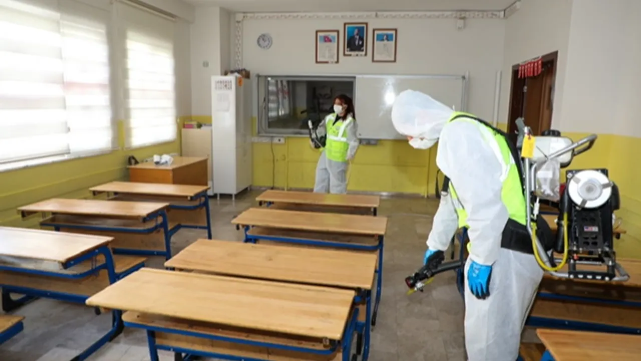 İlçe genelinde yürütülen çalışmayla okullarda bir yandan dezenfekte faaliyetleri yapılırken bir yandan da haşere ile mücadele kapsamında ilaçlama gerçekleştiriliyor.