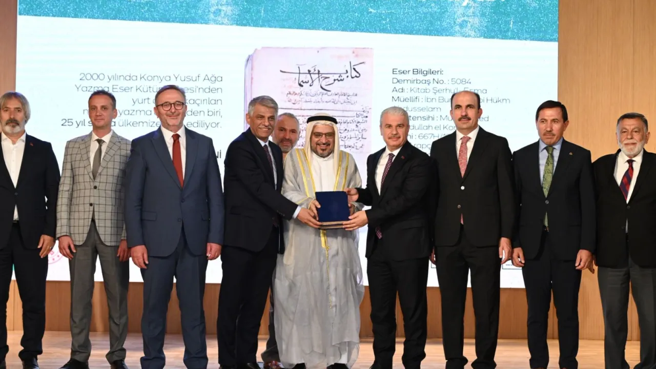 Konya’da 2000 yılında Yusuf Ağa Yazma Eser Kütüphanesi’nden yurt dışına kaçırılan 757 yıllık “Kitab Şerhu’l-Esma” adlı eserin yeniden şehre kazandırılması dolayısıyla teslim programı düzenledi.