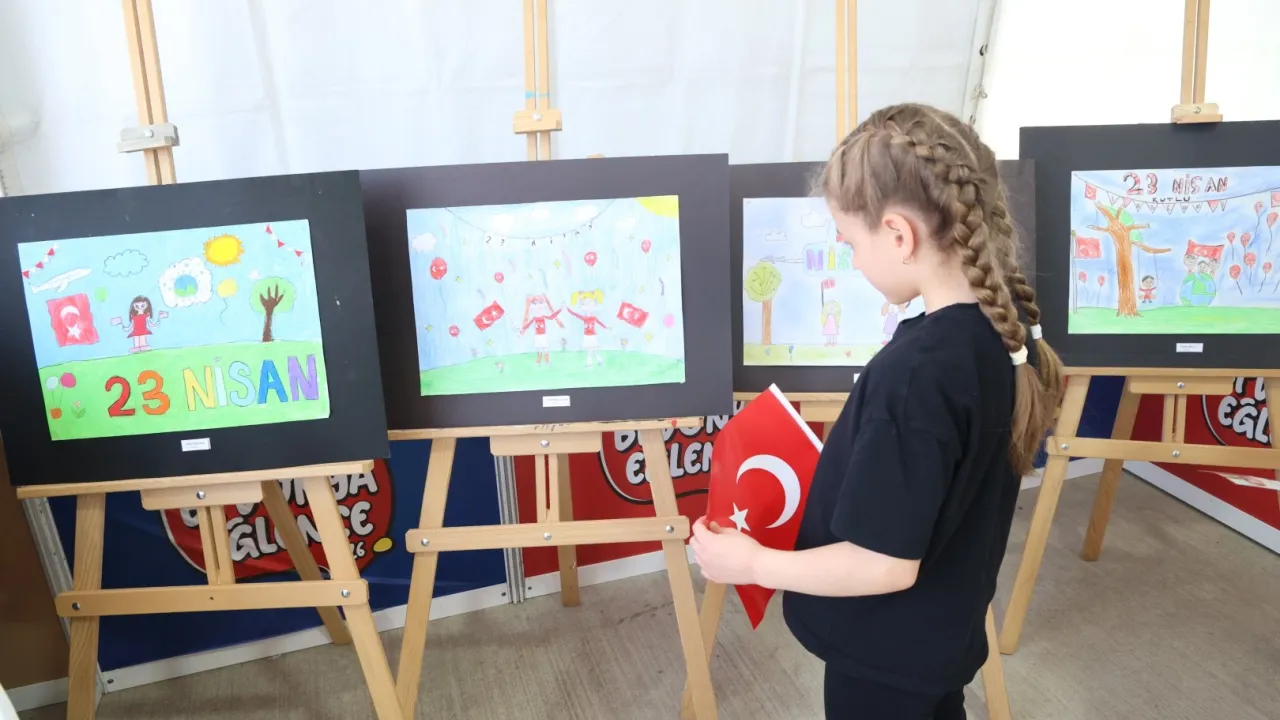 Kocaeli Büyükşehir'in 23 Nisan Şenliği, sanat kurslarının da katılımıyla renklenmeye devam ediyor. Şenlik kapsamında kurulan sergi alanında öğrencilerin hazırladığı eserler ziyaretçilerin büyük ilgisini çekti.