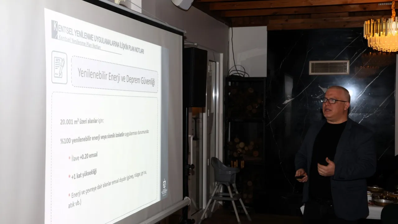 Toplantıda kentsel dönüşüm plan notları, Dünya Bankası'nın sunduğu kredi imkânları, ilçe belediyelerinin yetki alanları, otopark yönetmeliği ve bedelleri, projelerde itfaiye onayı, zemin iyileştirme çalışmaları ile MİA (Merkezi İş Alanları) bölgelerinde uygulanan kırmızı kot konuları ele alındı. Kentsel Dönüşüm Dairesi Başkanı Ali Serkan Simavlı yaptığı sunumda; kentsel dönüşüm plan notları, Dünya Bankası destekleri ve ilçe belediyelerinin yetki süreçlerine ilişkin kapsamlı bilgiler paylaştı.