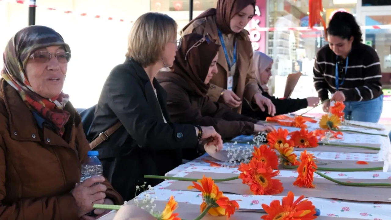 Atölyeye katılan kadınlar kendileri için, gençler anneleri ve sevgilileri için, erkekler ise eşleri için uzman ekip eşliğinde çiçek buketi hazırladı. Yapılan farkındalık etkinliği kapsamında kadına yönelik şiddetin karşısında dayanışma çiçekleri 'şiddetsiz bir dünya' temasıyla anlamlandırıldı. Etkinlik kapsamında kadına yönelik şiddete 'dur' mesajı ise turuncu kurdeleler ile verildi.