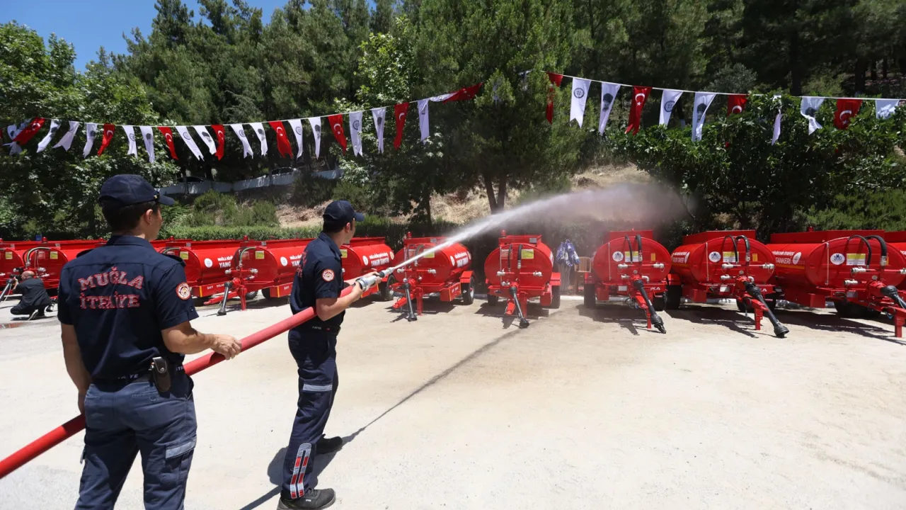 Muğla Büyükşehir Belediyesi, orman yangınlarıyla mücadele için 6 dar alan itfaiye aracı ve 25 yangına ilk müdahale tankerini törenle teslim etti. Başkan Ahmet Aras, “Yangınlar sadece ağaçları değil, geleceğimizi de yakıyor” dedi.MUĞLA (İGFA) - Muğla Büyükşehir Belediyesi, orman yangınlarına karşı mücadele kapasitesini artırmak için 6 adet dar alan itfaiye aracı ve 25 adet yangına ilk müdahale tankerini ilçe grup amirliklerine ve mahallelere teslim etti.