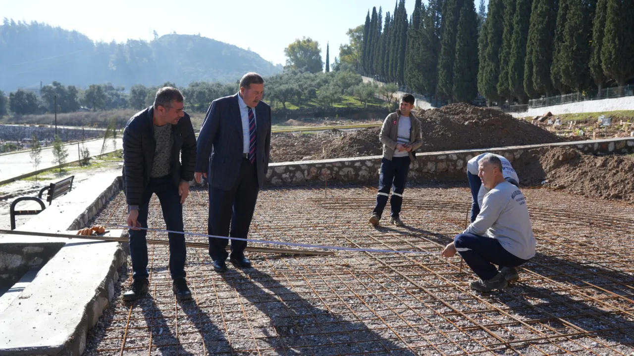 Milas Belediyesi ekipleri tarafından vatan savunmasında canlarını veren şehitlerimizin manevi hatıralarını ölümsüzleştirmek için yapımına başlanan şehitlik anıtını Milas Belediye Başkanı Fevzi Topuz da ziyaret ederek çalışmalar hakkında bilgiler aldı.
