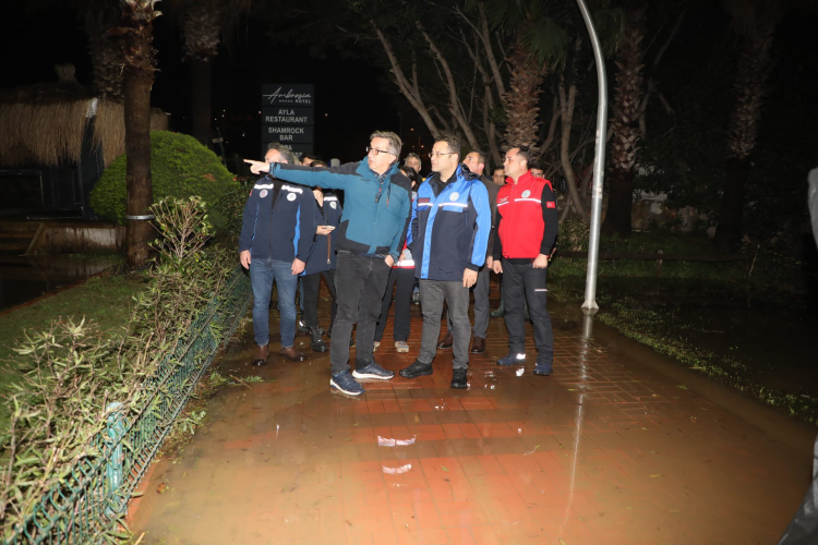 Yağışların en etkili olduğu bölgelerden biri olan Bodrum'da çalışmaları yerinde takip eden Büyükşehir Belediyesi Genel Sekreteri Tayfun Yılmaz, ekiplerin sahadaki sevk ve idaresini sağladı. Yılmaz, 'Büyükşehir Belediye Başkanımız Ahmet Aras süreci yakından takip ediyor. Vatandaşlarımızın sorun yaşamaması için gerekli tüm tedbirler alınıyor. Bizler de ekiplerimizle birlikte sahada koordinasyonu sağlayarak olumsuzlukları en kısa sürede gidermek için çalışıyoruz' dedi.