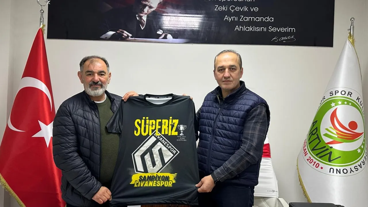 Bursa’da faaliyet gösteren Livanespor’un kurucularından ve takımın teknik direktörü Tarkan Civelek, Artvin Amatör Spor Kulüpleri Federasyonu (ASKF) Başkanı Sadettin Dağ’ı makamında ziyaret etti.Bayram SARAYOĞLU / ARTVİN (İGFA) - Ziyarette,  Livanespor’un şampiyonluk forması Dağ’a hediye edildi. Görüşmede hem Livanespor’un başarı yolculuğu hem de Bursa’daki Artvinli topluluğun dayanışması üzerine önemli mesajlar verildi. Başarılı teknik adam Takan Civelek, kulübün kuruluş hikâyesini ve ulaştıkları başarıları paylaşırken, Livanespor’un sadece bir spor kulübü değil, aynı zamanda Bursa’da yaşayan Artvinlileri bir araya getiren bir sosyal birliktelik alanı olduğunu söyledi.