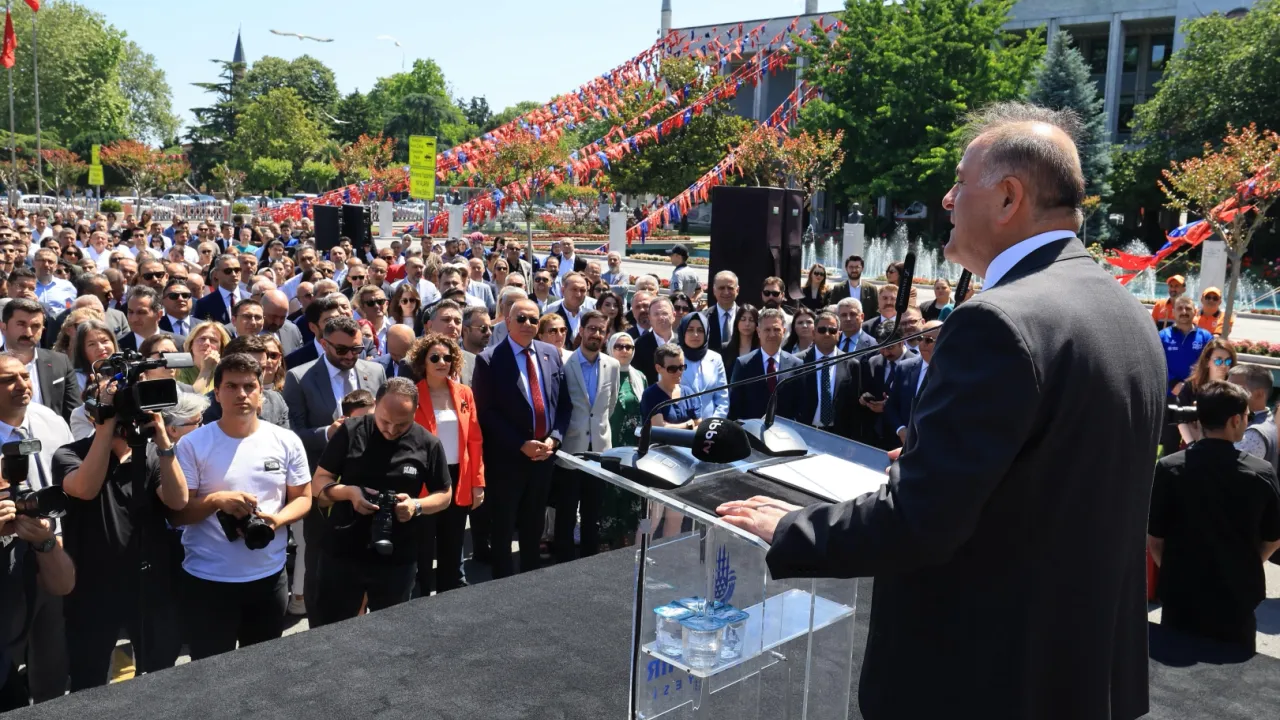 İstanbul Büyükşehir Belediyesi, Kurban Bayramı dolayısıyla gelenekselleşen bayramlaşma törenini Saraçhane’de gerçekleştirdi.İSTANBUL (İGFA) - İstanbul Büyükşehir Belediyesi Başkanvekili Nuri Aslan, Saraçhane'deki geleneksel bayramlaşma töreninde yaptığı konuşmaya seçilmiş Büyükşehir Belediye Başkanı Ekrem İmamoğlu’nun mesajını ileterek başladı.