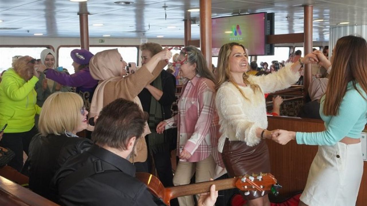 Boğaz Turu, kadınlar matinesini andıran renkli anlara da sahne oldu. Vapur müzisyenlerinin canlı performansları eşliğinde dans edip eğlenen kadınlar, Vapur Kafe’nin çay ve simit ikramlarıyla da keyifli bir gün geçirdi.