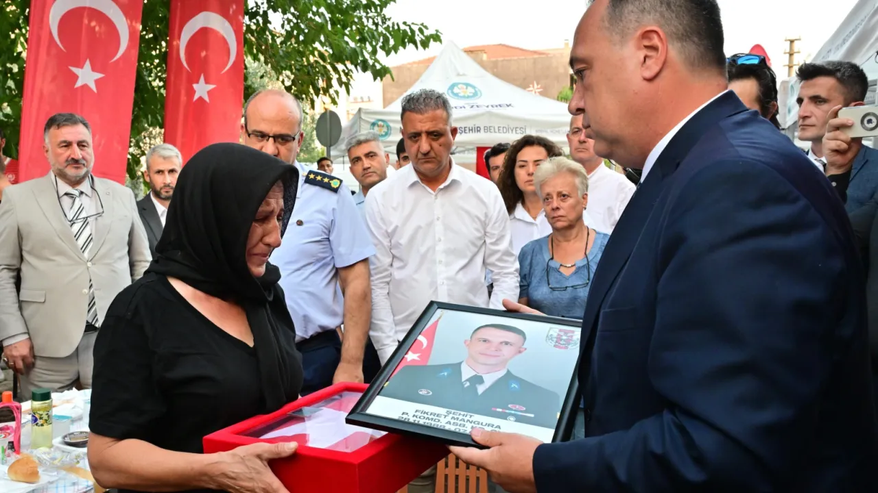 Manisa Irak’ın kuzeyindeki Pençe-Kilit Harekatı’nda şehit olan Piyade Komando Astsubay Kıdemli Çavuş Fikret Mangura’nın vefatının 7. gününde, Manisa Büyükşehir Belediyesi’nin, memleketi Akhisar ilçesinde düzenlediği mevlit hayrında dualarla anıldı.MANİSA (İGFA) - Manisa Büyükşehir Belediye Başkanı Besim Dutlulu da mevlide katılarak, şehit annesine, Mangura’nın fotoğrafını ve Türk Bayrağı takdim etti.