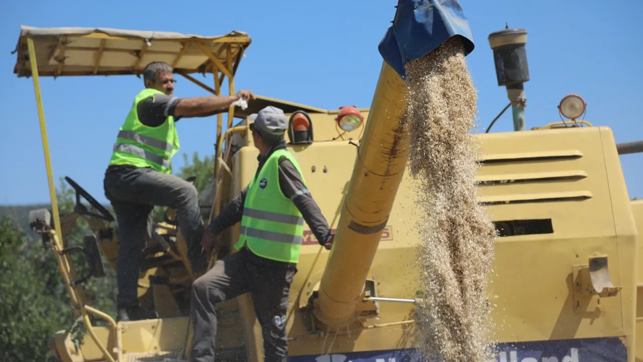 Bursa Büyükşehir Belediyesi tarafından dağ ilçelerinin kalkınması ve nitelikli tarım yapılması amacıyla dağıtılan Siyez buğdayının ilk hasadı, yine Büyükşehir Belediyesi tarafından sağlanan biçerdöver desteğiyle yapıldı.BURSA (İGFA) - Bursa’da çiftçilerin gelir düzeyini artırma ve üretim verimliliğini daha yukarıya çekme hedefiyle tarımsal destek çalışmalarını sürdüren Bursa Büyükşehir Belediyesi, kırsalda üretimi teşvik etmeye devam ediyor. Kırsal Hizmetler Daire Başkanlığı ve BESAŞ işbirliğiyle dağ ilçelerine dağıtılan Siyez buğdayında ilk hasat, Büyükşehir Belediyesi’nin biçerdöver desteğiyle Tarım Peyzaj AŞ ekipleri tarafından yapıldı. Keles ilçesi Yazıbaşı Mahallesi’nde yapılan hasat, üreticilerin de yüzünü güldürdü.